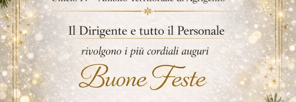 HomeNews In evidenza ComunicatiCartolina di auguri per le festività natalizie del Dirigente e del personale dell’A.T. di Agrigento Cartolina di auguri per le festività natalizie del Dirigente e del personale dell’A.T. di Agrigento Data: 23/12/2025 Provvedimento di ripartizione ulteriori posti/ore di sostegno in deroga A. S. 2025/2026