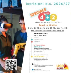 nnaio p.v., alle ore 16:00, l’ USR organizza un incontro online in occasione delle iscrizioni per l’anno scolastico 2026/27 con un approfondimento speciale sulle opportunità offerte dalla filiera tecnologico-professionale 4+2.